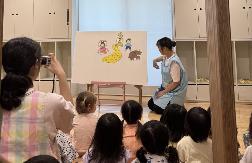 織姫と彦星のお話を初めて聞く子どももおり、パネルシアターに興味津々でした。