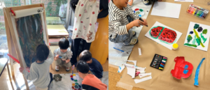 **「自分で選ぶ」「自分で表現する」**という経験を大切にしながら、子どもたちの創造力が自然と引き出されるように美術講師の指導のもと環境を整えました。保育士は、ただ見守るだけでなく、必要なときにそっと手を添えたり、言葉をかけたりしながら、子どもたちが“やってみたい”気持ちを後押ししています。