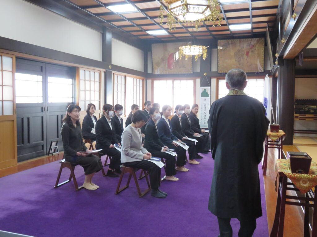 また、崇仁会理事長である森巌寺の住職と一緒に法要を行い、新入職員を迎えられたことの喜び、また職員一同見守っていただけるようにとお願いしました。