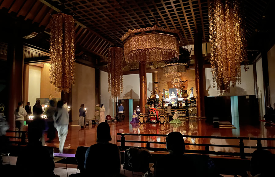 成道会は、芝にある浄土宗大本山増上寺にて行われ、法要には計14の保育園や幼稚園から、各園数名ずつの先生方が集まり、大殿(本堂)をお借りして厳粛な雰囲気の中、法要が執り行われました。
