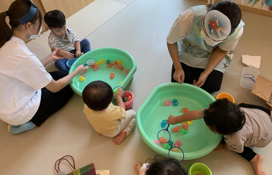 北沢みこころ保育園で新イベントである「秋祭り」を開催いたしました。本来、敬老の日のイベントと同時におじいちゃんおばあちゃんと共にお祭りを楽しんでいただこうと計画していましたが、コロナ禍での実施は厳しいと判断して、今回は園児だけで楽しむことにしました。屋台には、「金魚すくい」「かき氷」「ようようすくい」「ボールなげ」などがありました。
